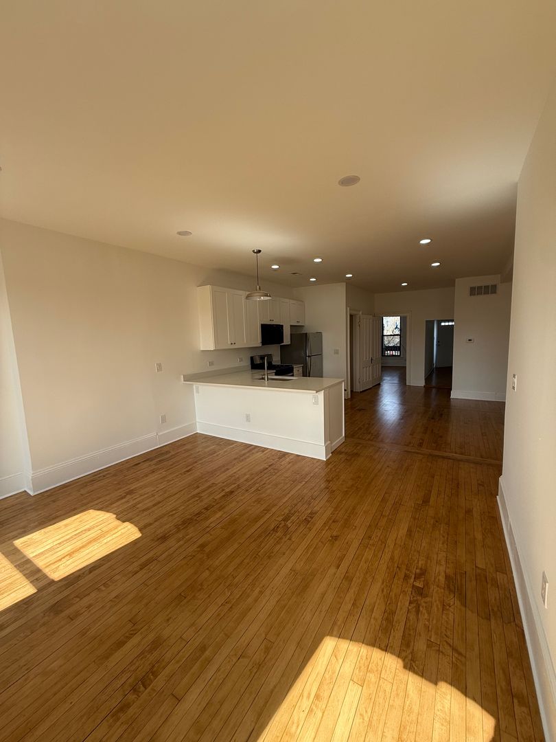 Stunningly remodeled with a new kitchen, bathroom, and refinished hardwood floors, this is a special 3-bedroom unit in a vibrant Chicago neighborhood! This beautiful space in a handsome and historic brick building features central AC, an in-unit washer/dryer, a dishwasher, and tons of natural light. A back deck offers views of the loop, and a shared green space provides a private oasis in the city.